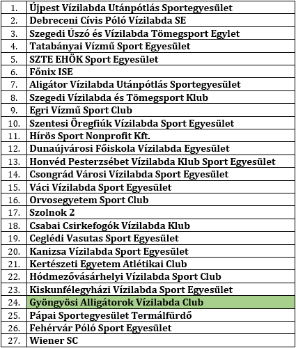 | 15:00 | Váci Vízilabda SE – Gyöngyösi Alligátorok | 10-3 |